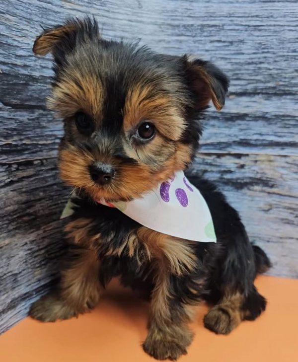Maple is a traditional AKC Yorkshire Terrier with a bold, spirited personality and a heart full of sweetness. Expected to be around 5 pounds when fully grown, Maple is a go-getter with a spark of mischief and charm. She’s an instigator, playful, and always ready to start the fun—sometimes with a bark to let you know she means business. But once she’s in your lap, she melts into a calm, loving companion who adores affection and connection. Resilient, lively, and endlessly endearing, Maple is the perfect blend of firecracker energy and gentle sweetness.
